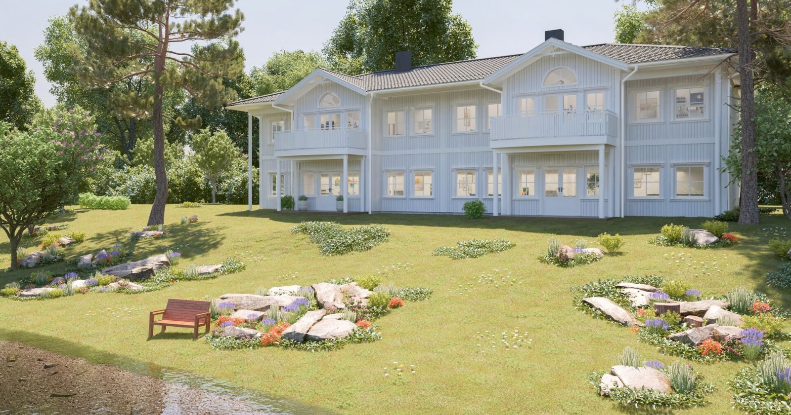 Romslige leiligheter med preg av tradisjonell herskapelig stil. Man har her felles tilkomst med trappeoppgang og avsatt plass til løfteplattform. Leilighetene har tilgang til terrasse/balkong fra et romslig allrom.