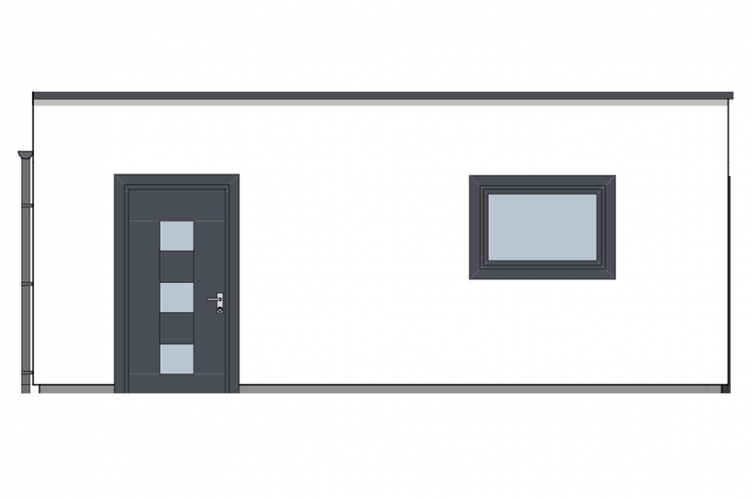 Enkel, stilren og tidsriktig garasje med flatt tak og detaljer som går godt sammen med en bolig i funkis-stil. Fasaden til bygget kan pusses eller kles med fasadeplater for å fremheve garasjens moderne uttrykk.