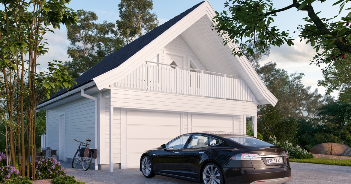 Garasjen har en klassisk fasade og står godt til de fleste boliger.